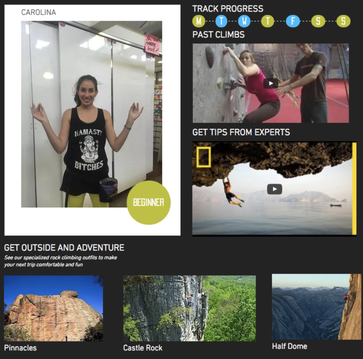 We used our key learnings and chose to focus on beginner climbers. We came up point of view that adhered to North Face's brand and met the needs of people getting into climbing: "It would make a difference if Juliet, a beginner rock climber, could start her journey into climbing by being immersed in a non-judgmental, self-competitive, playful space."