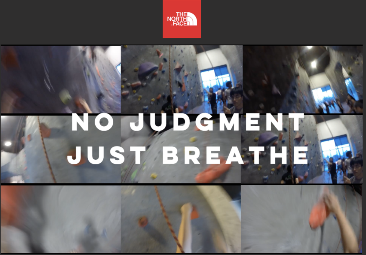 Additionally, the footage becomes part of a photomontage that can be displayed at local gyms. If ZenPro is carried out in all gyms across the nation, this project has the potential to create a the biggest photomontage of people: a photomontage of a creative, non-judgmental climbing experience. We prototyped these ideas and gathered feedback from our target audience. We then presented our prototype to North Face.
